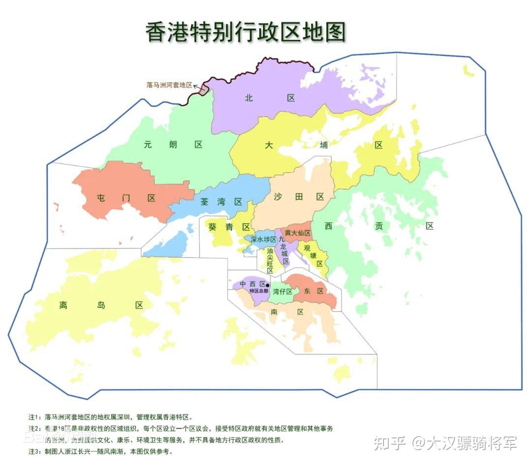 香港地理上分为香港岛、九龙岛和新界三大部分,行政上分为十八个行政分区,每行政区设一个区议会,分别为中西区、东区、南区、湾仔区、九龙城区、观塘区、深水埗区、黄大仙区、油尖旺区、离岛区、葵青区、北区、西贡区、沙田区、大埔区、荃湾区、屯门区、元朗区。